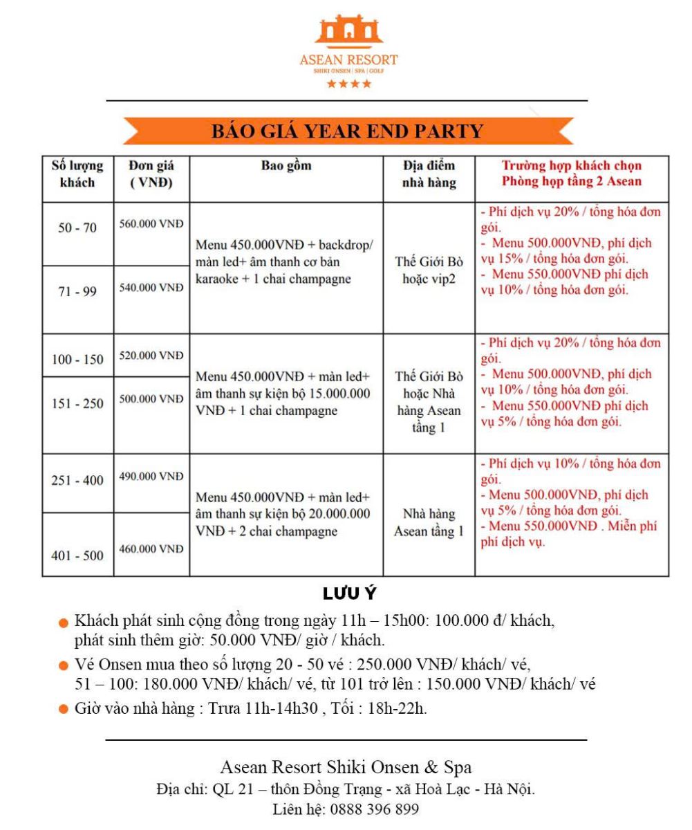 Tùy số lượng khách, chương trình Year End Party được trang bị: