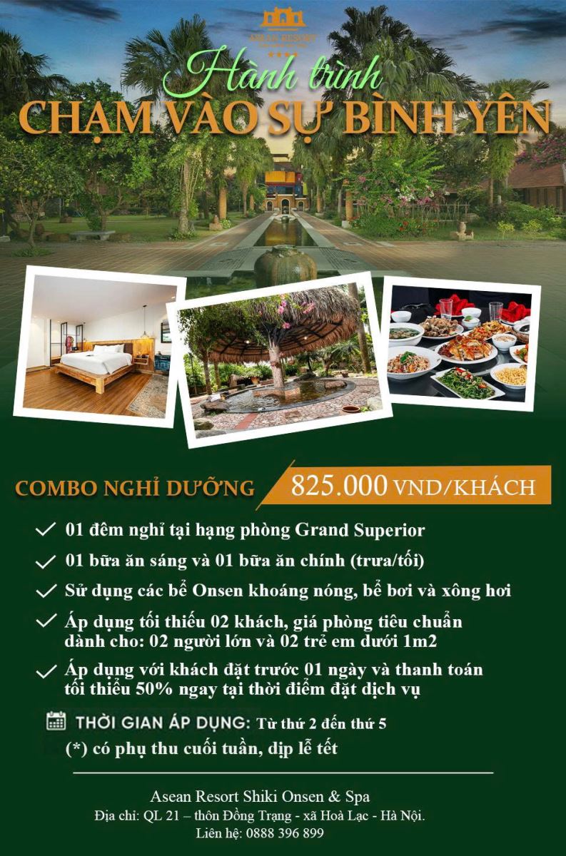 Trọn vẹn một kỳ nghỉ xanh – mát – sang trọng combo nghỉ dưỡng hấp dẫn tại Asean Resort!