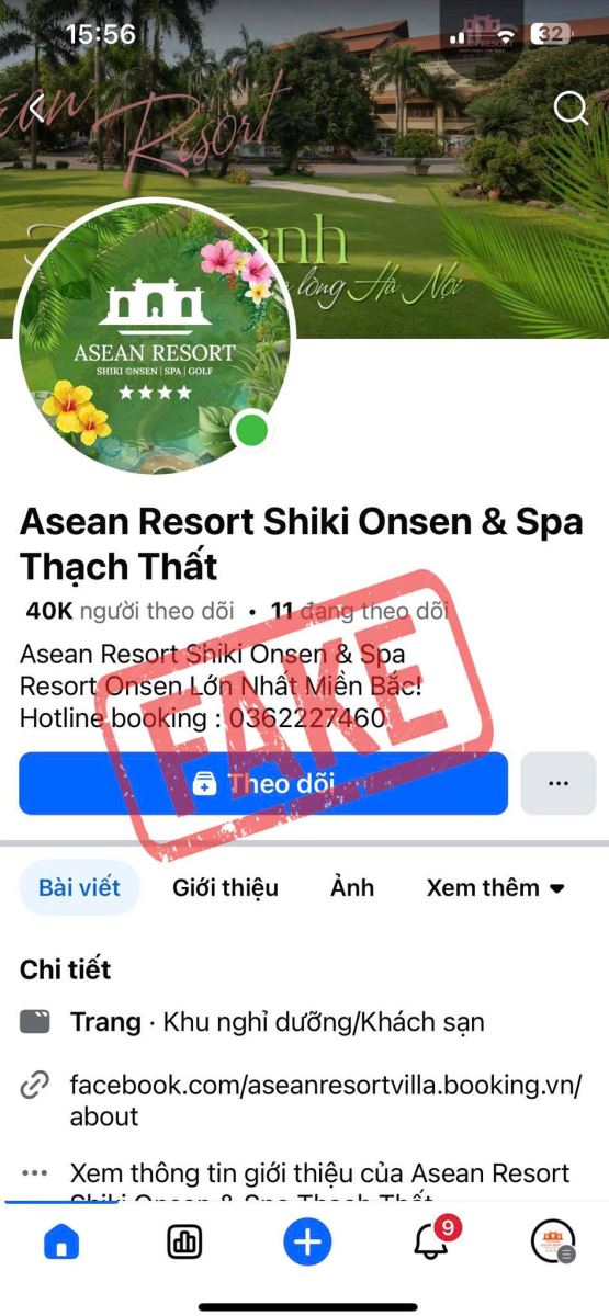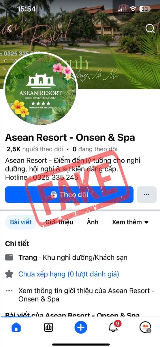 - Mạo danh fanpage Asean Resort hoặc tạo fanpage có tên và hình ảnh tương tự fanpage chính thức.